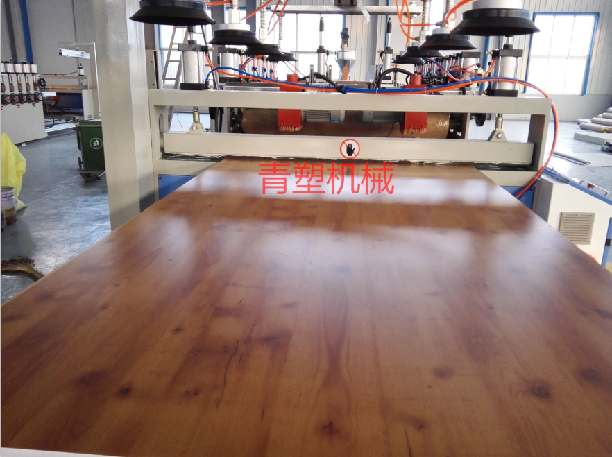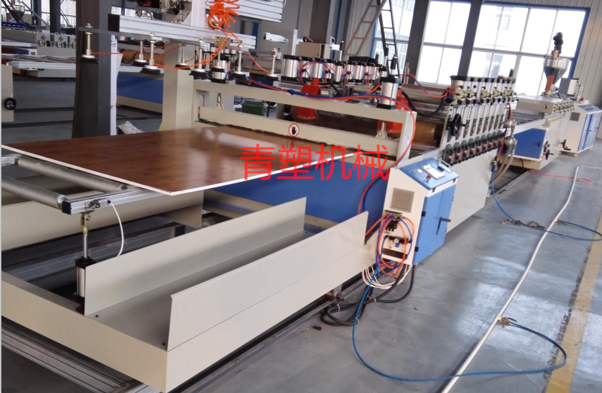 仿大理石板材機械設備結構緊湊,性能優越。螺桿、螺筒經優化設計,并采用高性能合金鋼專業加工,使整機具有塑化均勻,擠出量穩定,產量高,壽命長等優點。主機螺筒采用鑄鋁加熱器加溫,風冷卻,精密電控儀表控制溫度。精密的定型壓光裝置,通過其良好的調整功能使板材定型優良。切割部分采用定長切割裝置,保證板材長度精確。板材擠出設備有錐形雙螺桿擠出機,板材模具,定型平臺、牽引等輔機部分組成,實現一機多用,可以生產仿實木板材、實心硬質PVC板材、發泡板材等等。
